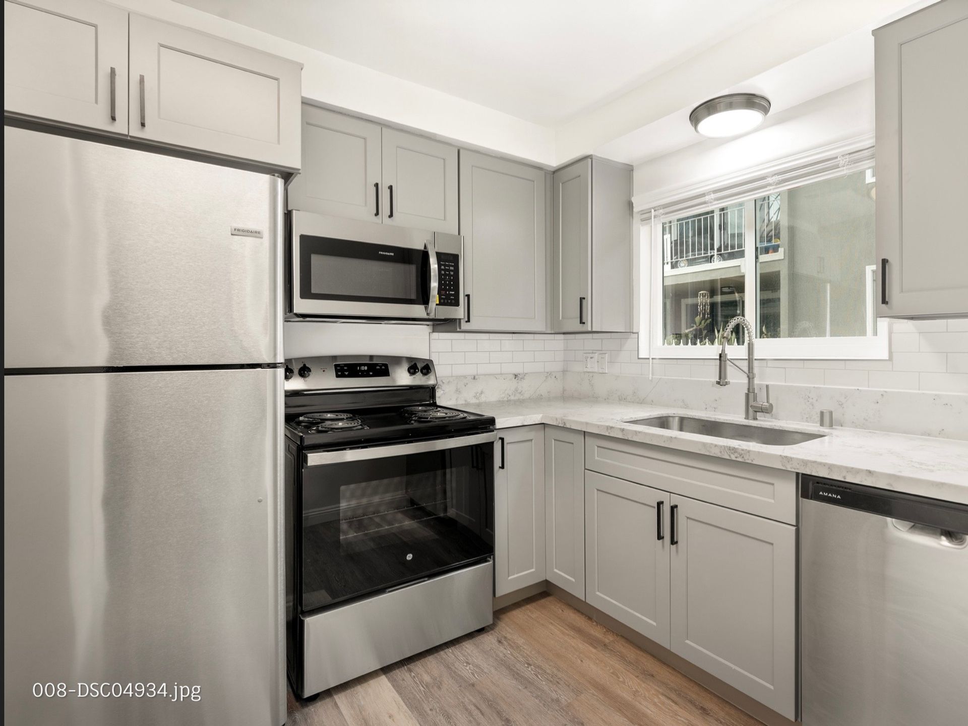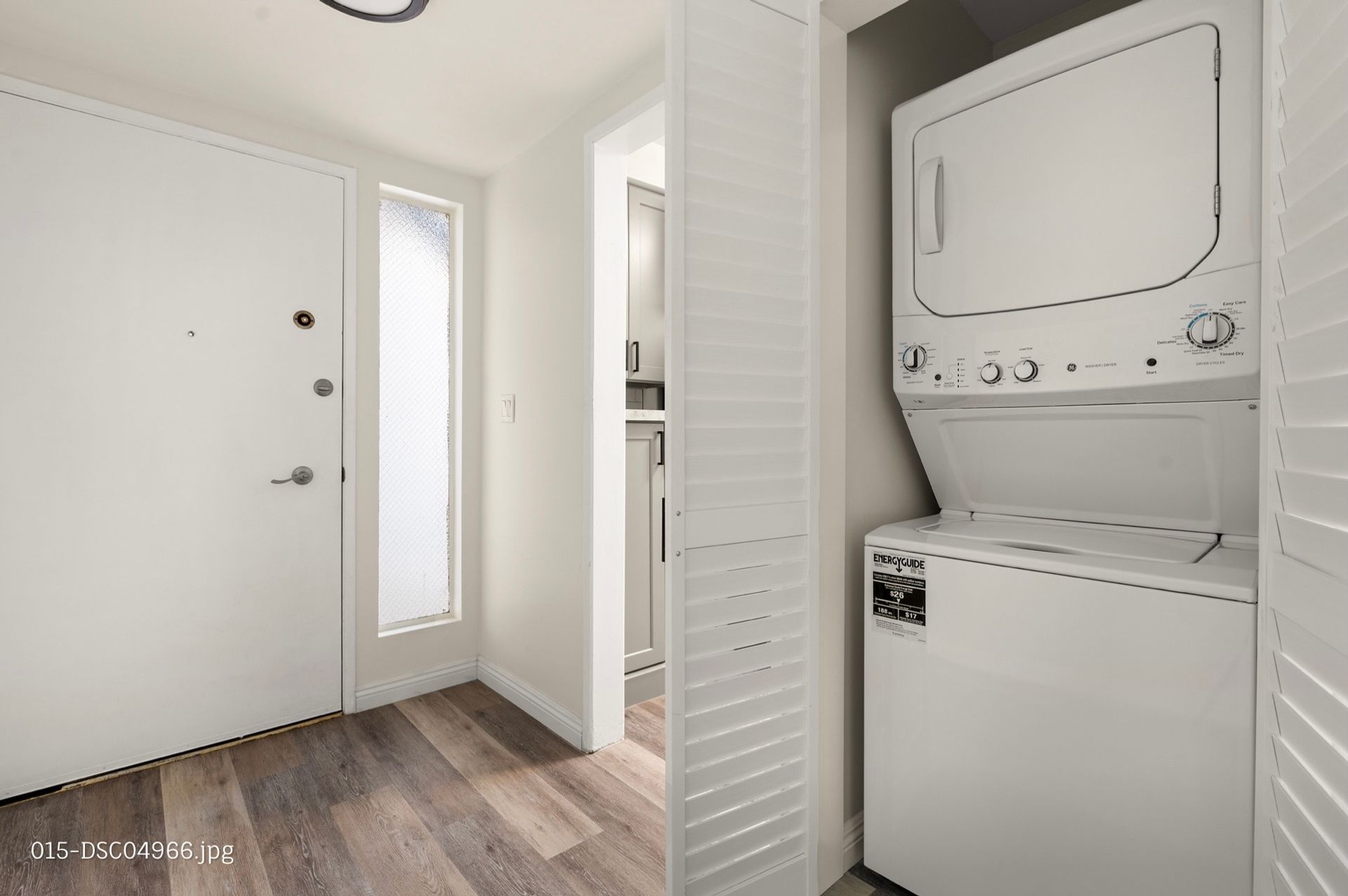 Spacious Two Bedroom Two Bathroom Apartment w/Full Kitchen and Bath, Plank flooring thru-out the whole apartment, Full-Sized Stainless Steel Appliances, Stackable Washer/Dryer. Central AC & Heating. Private Balcony, Assigned Parking. Central Laundry Rooms. Gated Community.